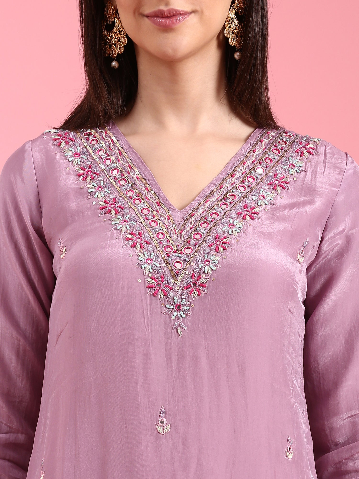 Lilac Organza Hand Embroidery Three Piece Suit Set