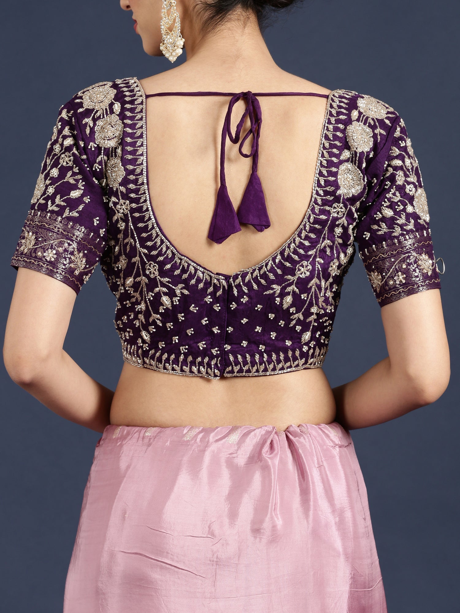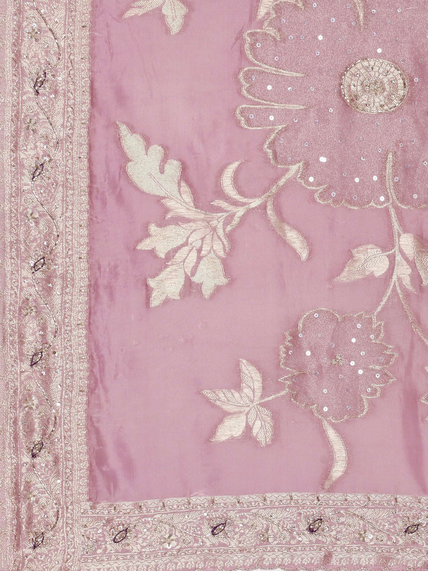 Elevate your elegance with this lilac tissue weaved saree, adorned with delicate stone work for a subtle shimmer. Crafted to perfection, it comes with a matching readymade blouse, ensuring a flawless fit and effortless style. Ideal for special occasions, this saree blends traditional artistry with contemporary grace.