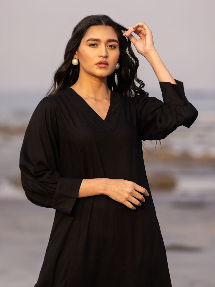 Malang Solid Black Slub Long Kurta