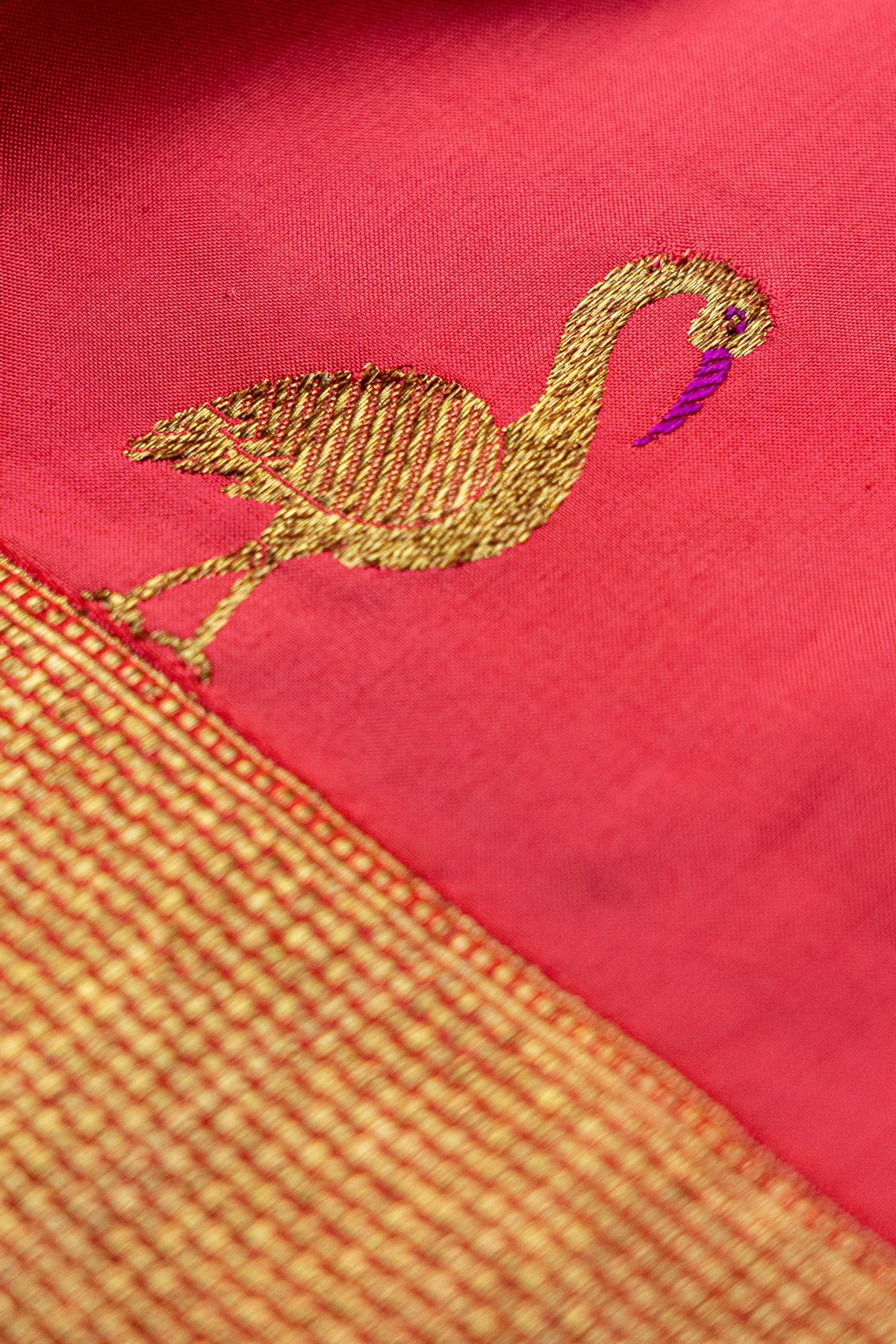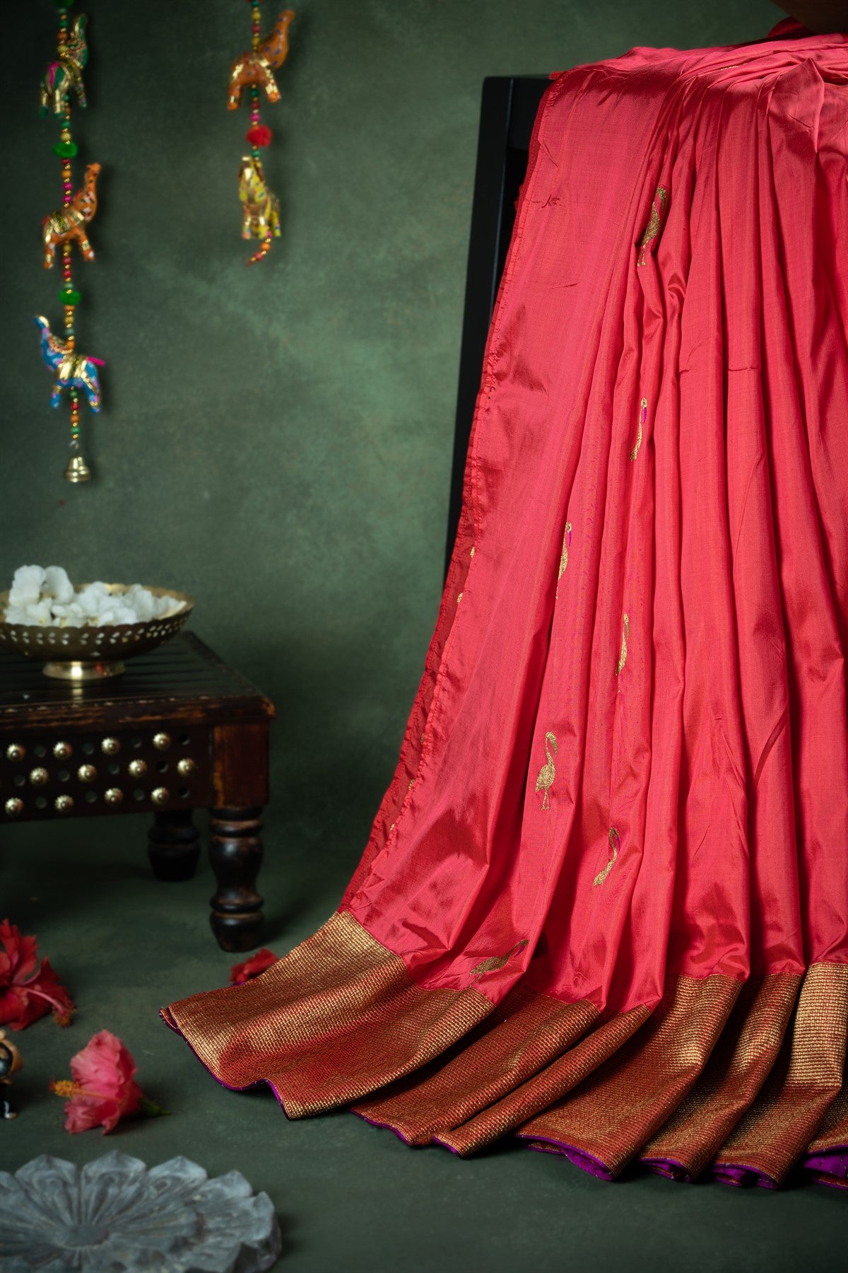 This Red Banarasi Silk Lines Saree features Figure motifs throughout its body and a Gold zari-woven pallu reflects the aesthetic's beauty. The gold Zari border and Buttis with border blouse complement the saree well and create a gorgeous appearance. Be party ready with this stunning Banarasi Silk Lines Red Saree.