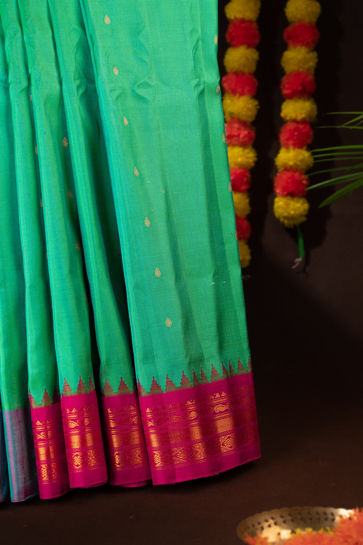 Mandir Sea Green & Magenta Gadwal Buttis Saree