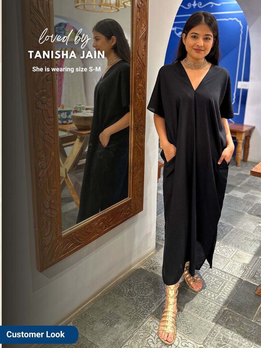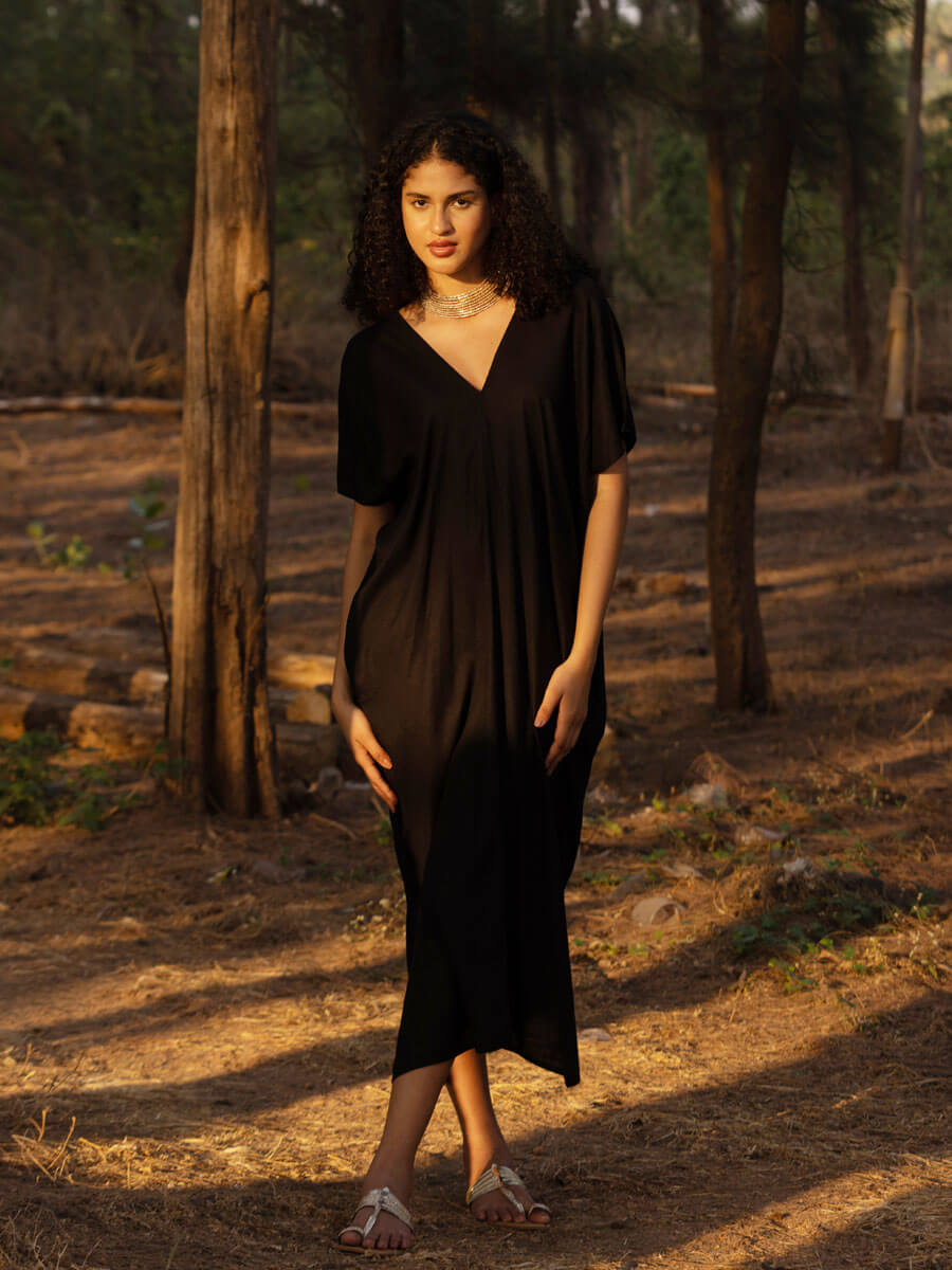 - Gorgeous comfort-fit viscose slub black kaftan dress
