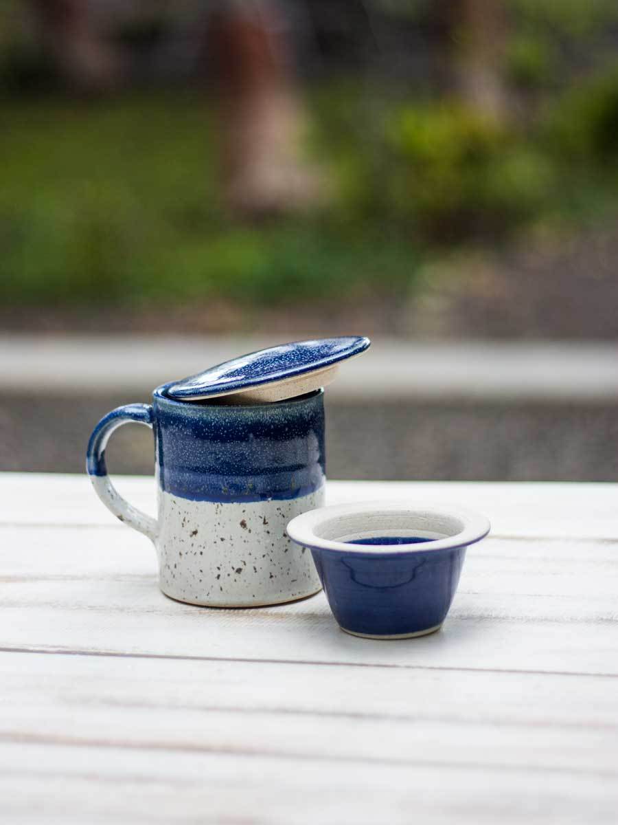 - Hand-thrown, glazed ceramic tea set