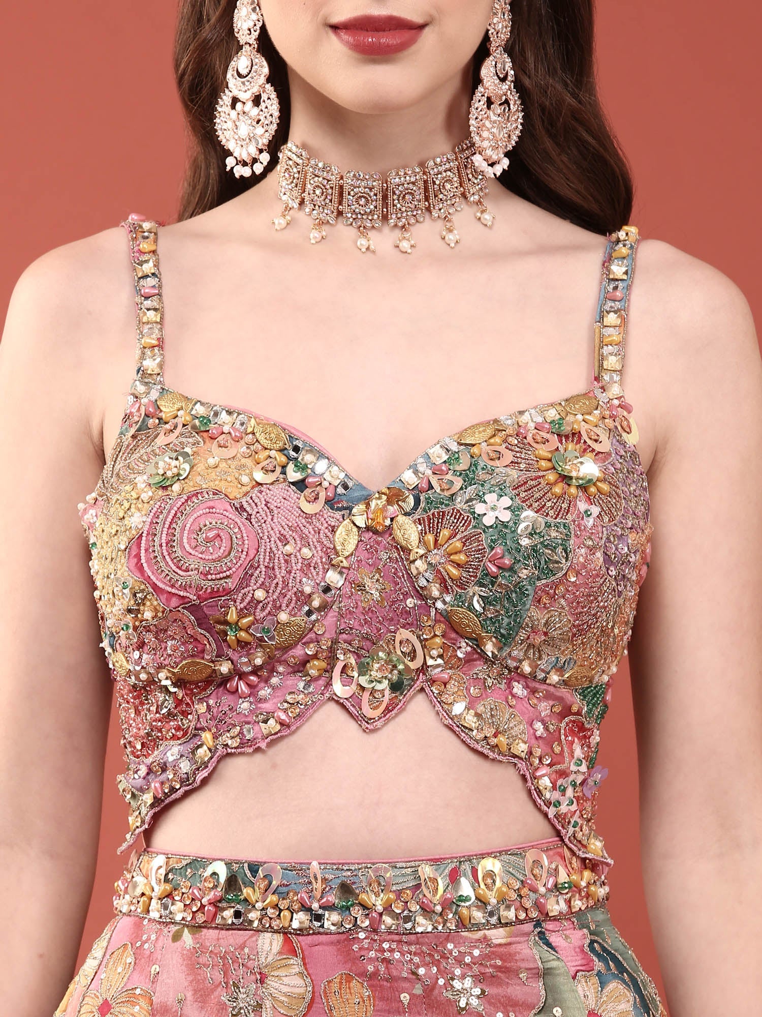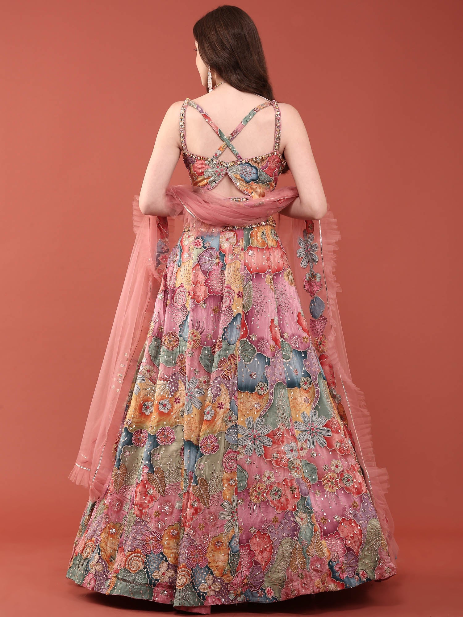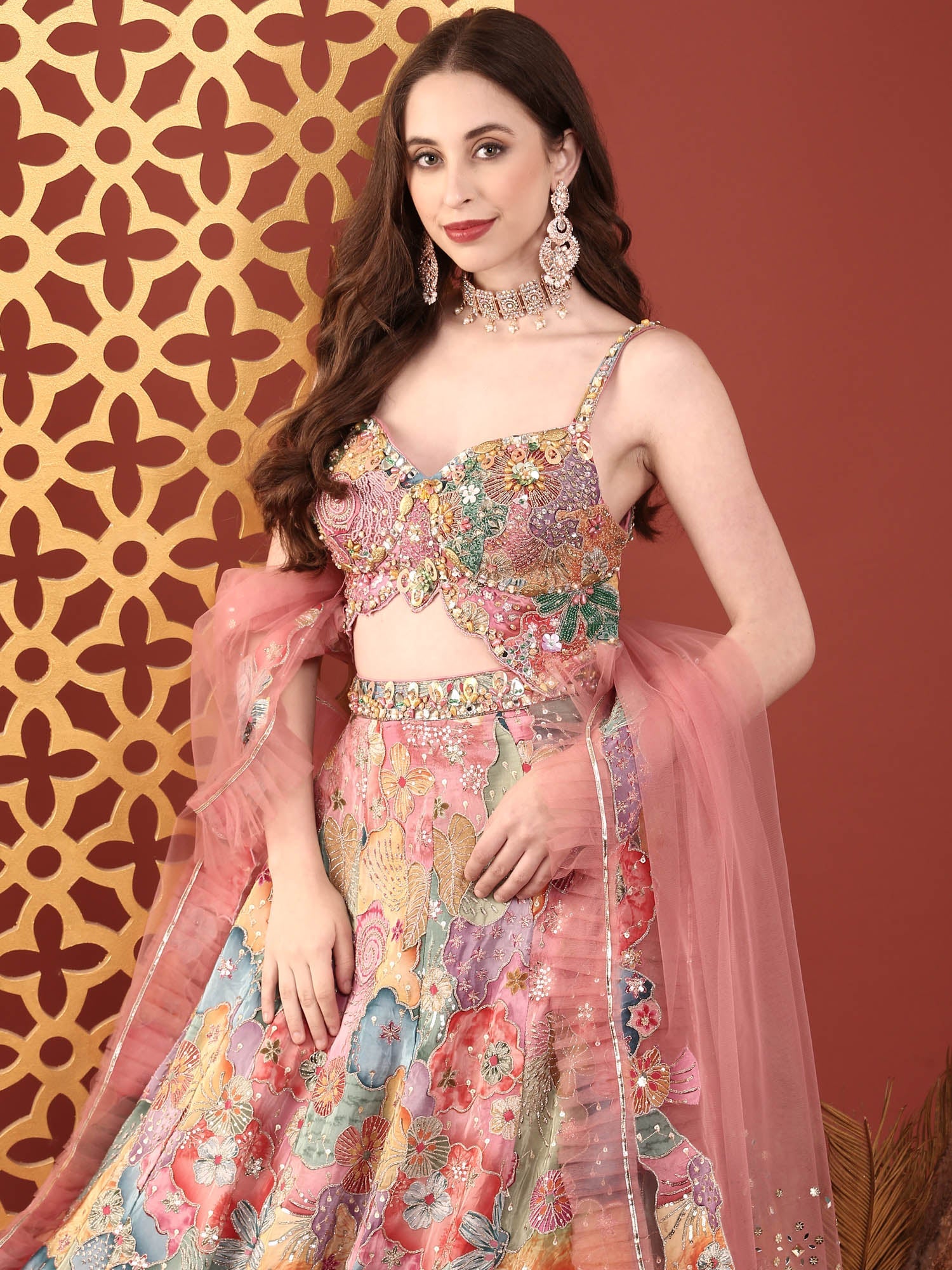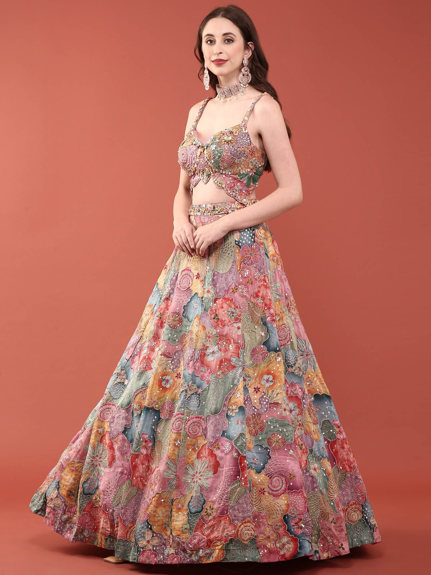 Elevate your ethnic wardrobe with this stunning Multi Colour Chinnon Heavy Embroidery Ghagra Set. Crafted from premium chinnon fabric, this traditional ensemble features intricate heavy embroidery work that showcases vibrant multi-coloured designs. Perfect for weddings, festivals, and special celebrations, the ghagra set combines timeless elegance with contemporary flair. The flowing silhouette and detailed embellishments create a graceful, flattering look that honours Indian craftsmanship. Ideal for those who appreciate authentic traditional wear with exquisite detailing.
