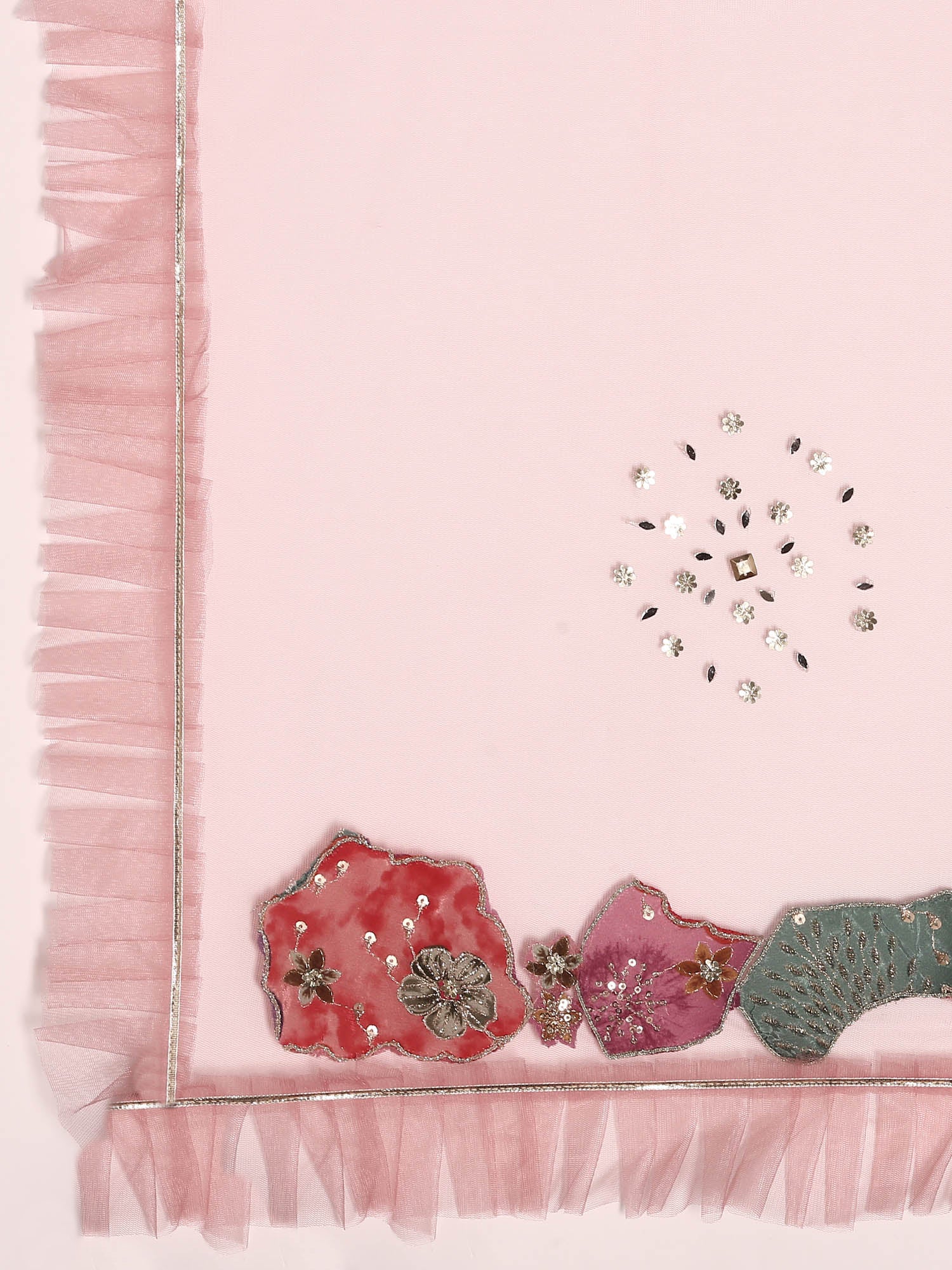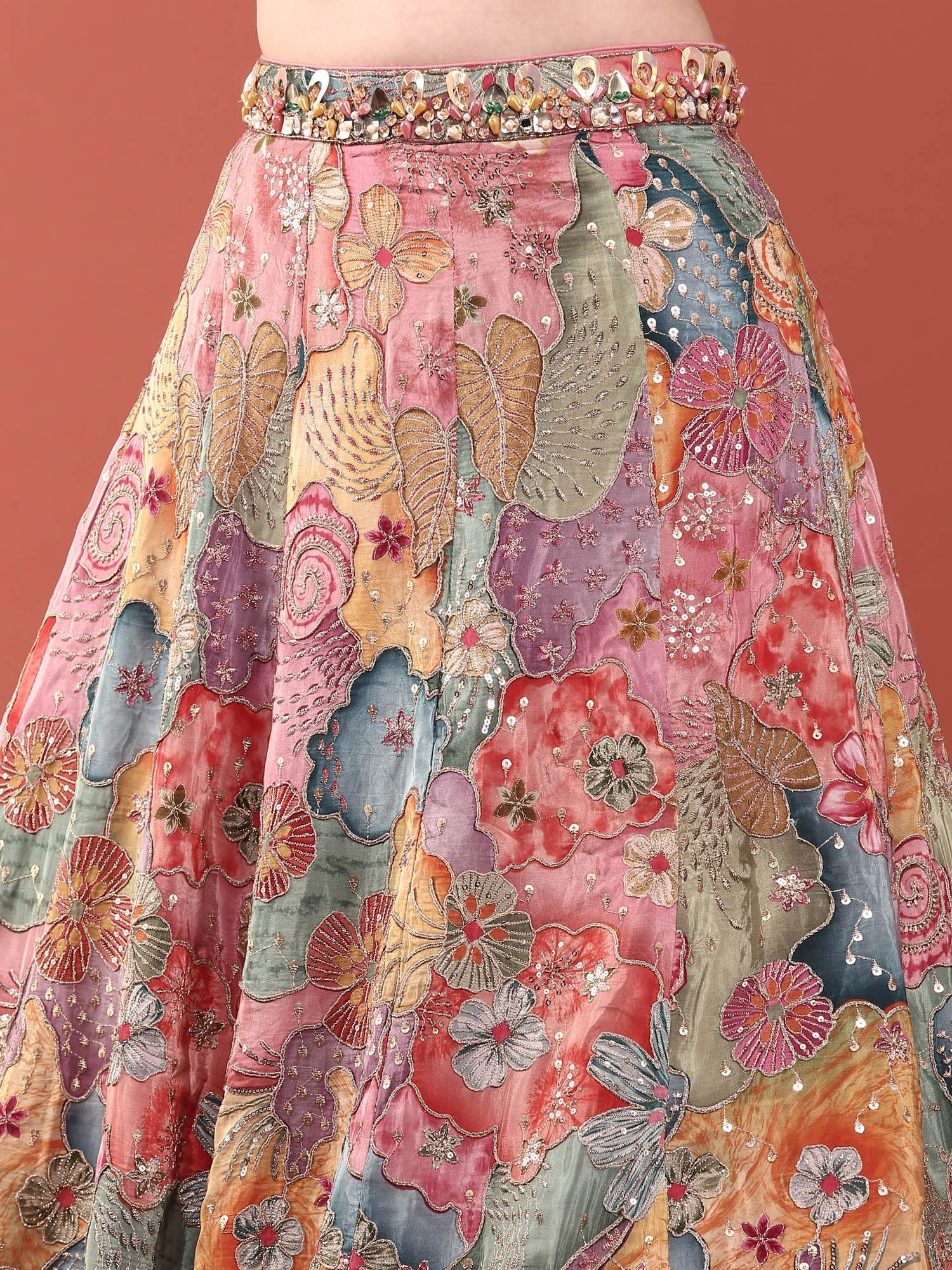 Multi Colour Chinnon Heavy Embroidery Ghagra Set