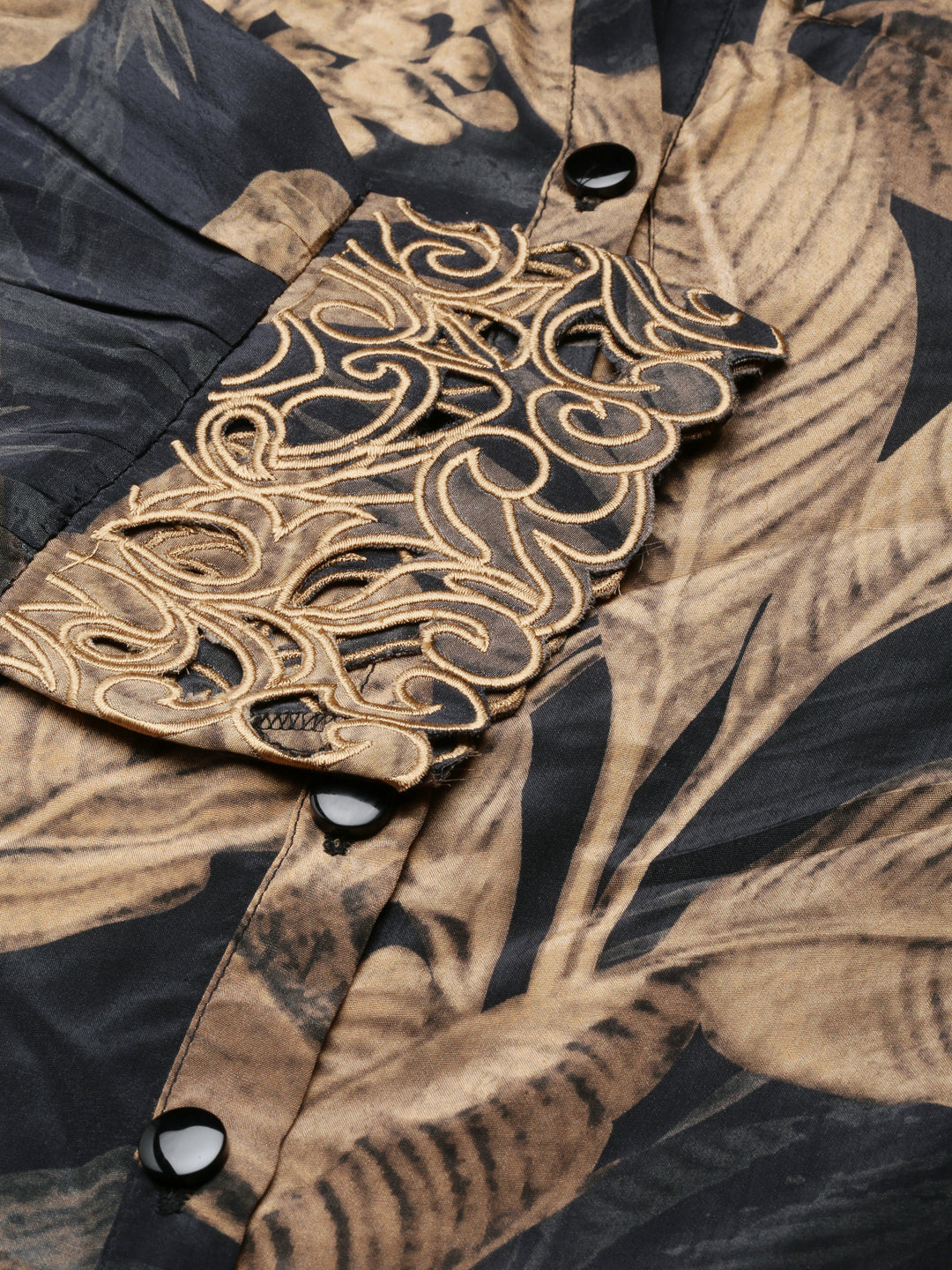 Neeru's Black Regular Straight Abstract Top And Trousers