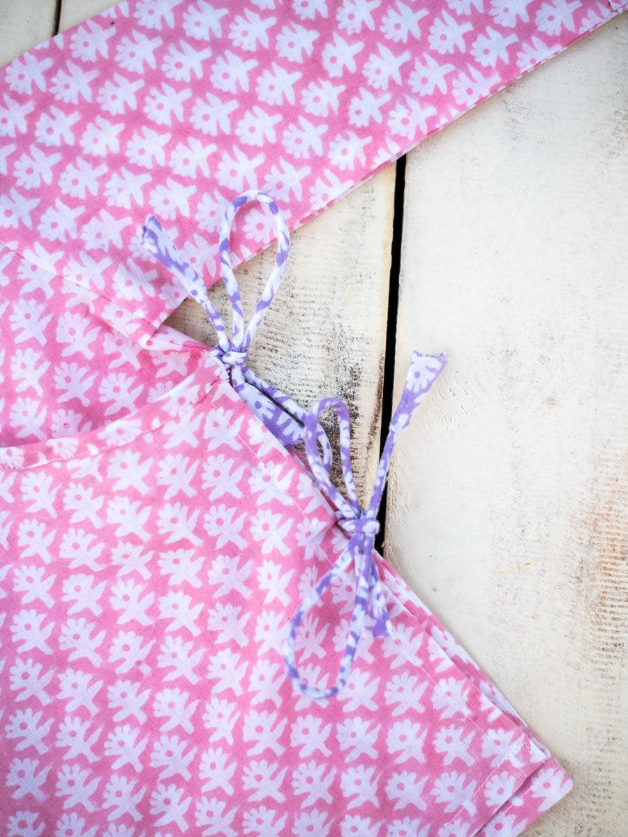 Pink Blossom Organic Cotton Block Printed Angrakha Set
