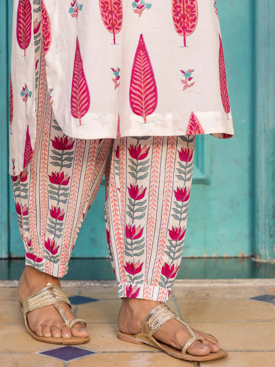 Pink Cypress Hand Block Print Cotton Kurta
