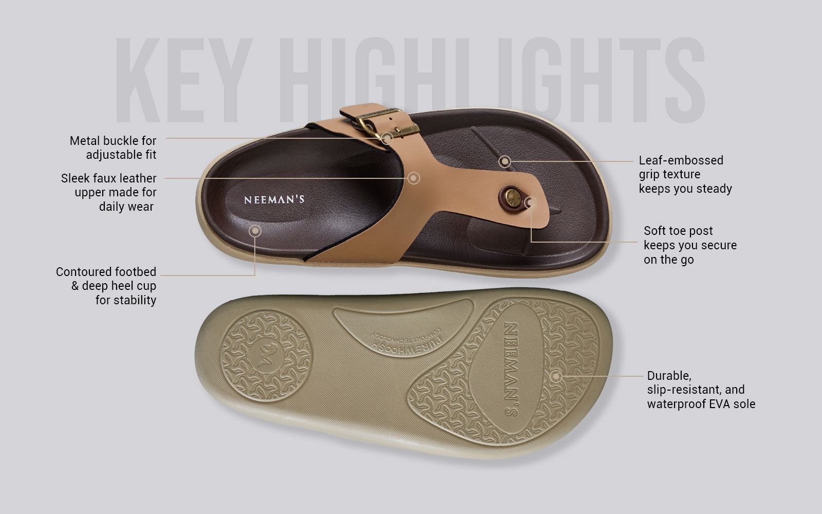 This isn’t just another sandal. With a sleek faux leather upper, a sharp adjustable buckle, and our all-new PureWhoosh sole, the PureWoosh Breeze delivers next-level support in a minimalist frame. Expect a contoured footbed, ergonomic cushioning, and a slip-resistant, waterproof base that keeps up with every plan, puddle, and pause.