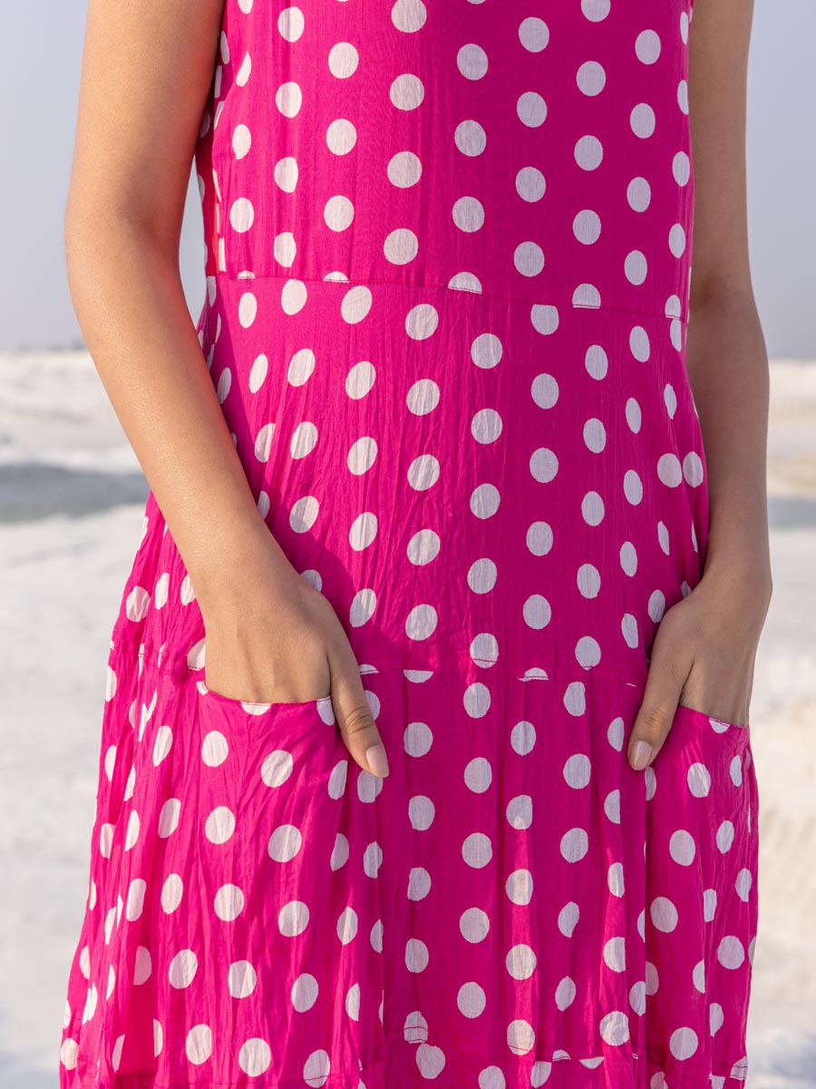 Rani Polka Sleeveless Tiered Dress
