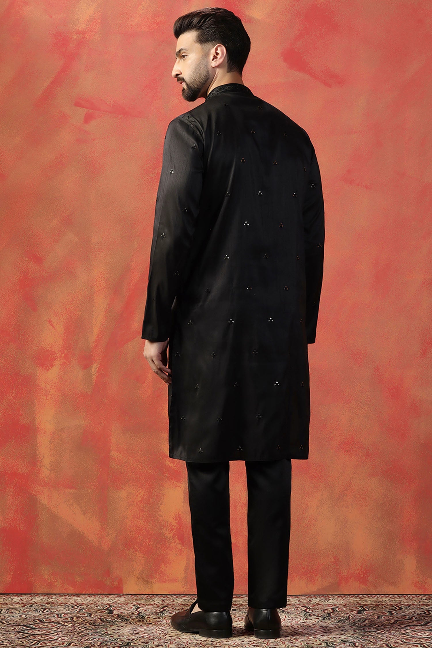 Raven Black Silk Blend Embroidered Kurta