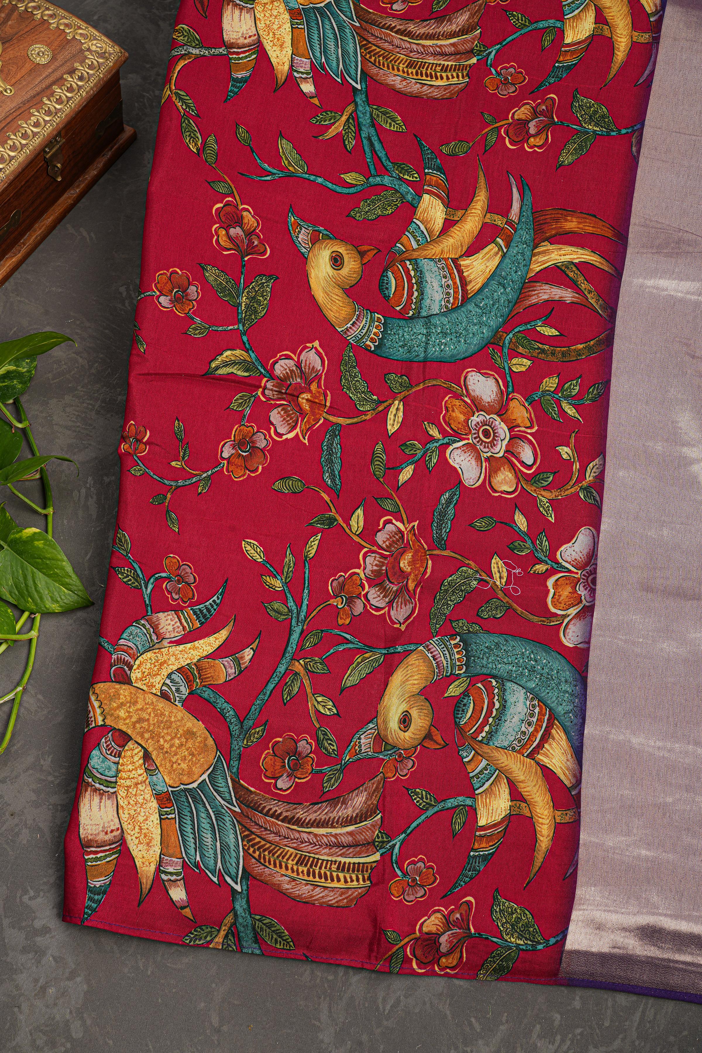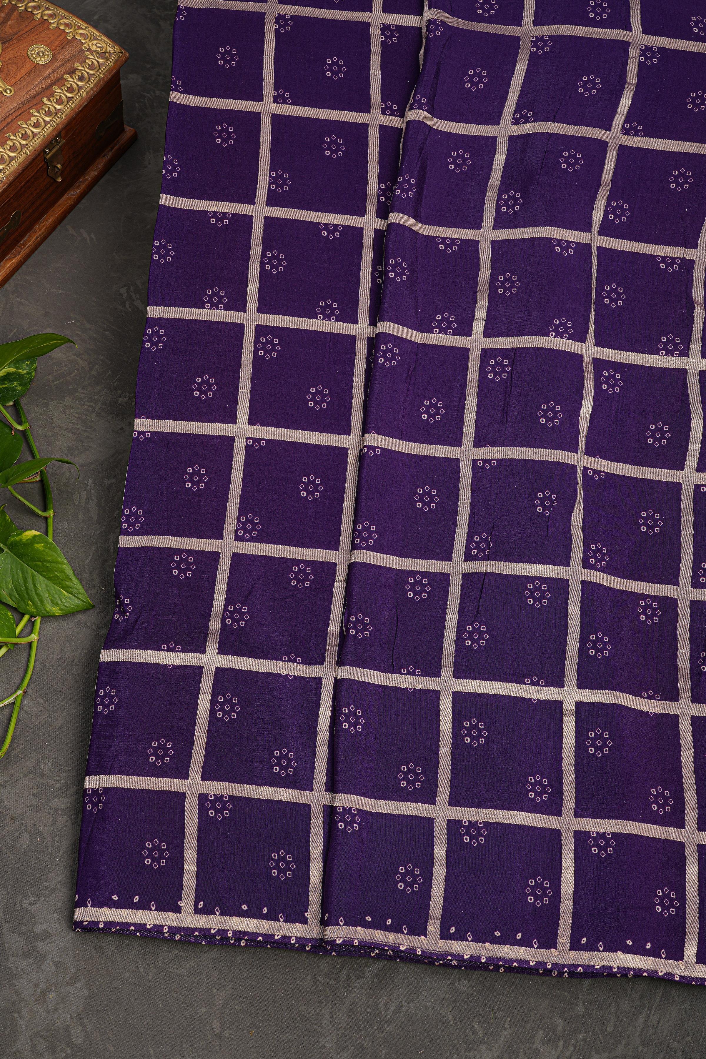 RED and VIOLET CHECKS AND BUTTIS VISCOSE Saree with BANARASI FANCY