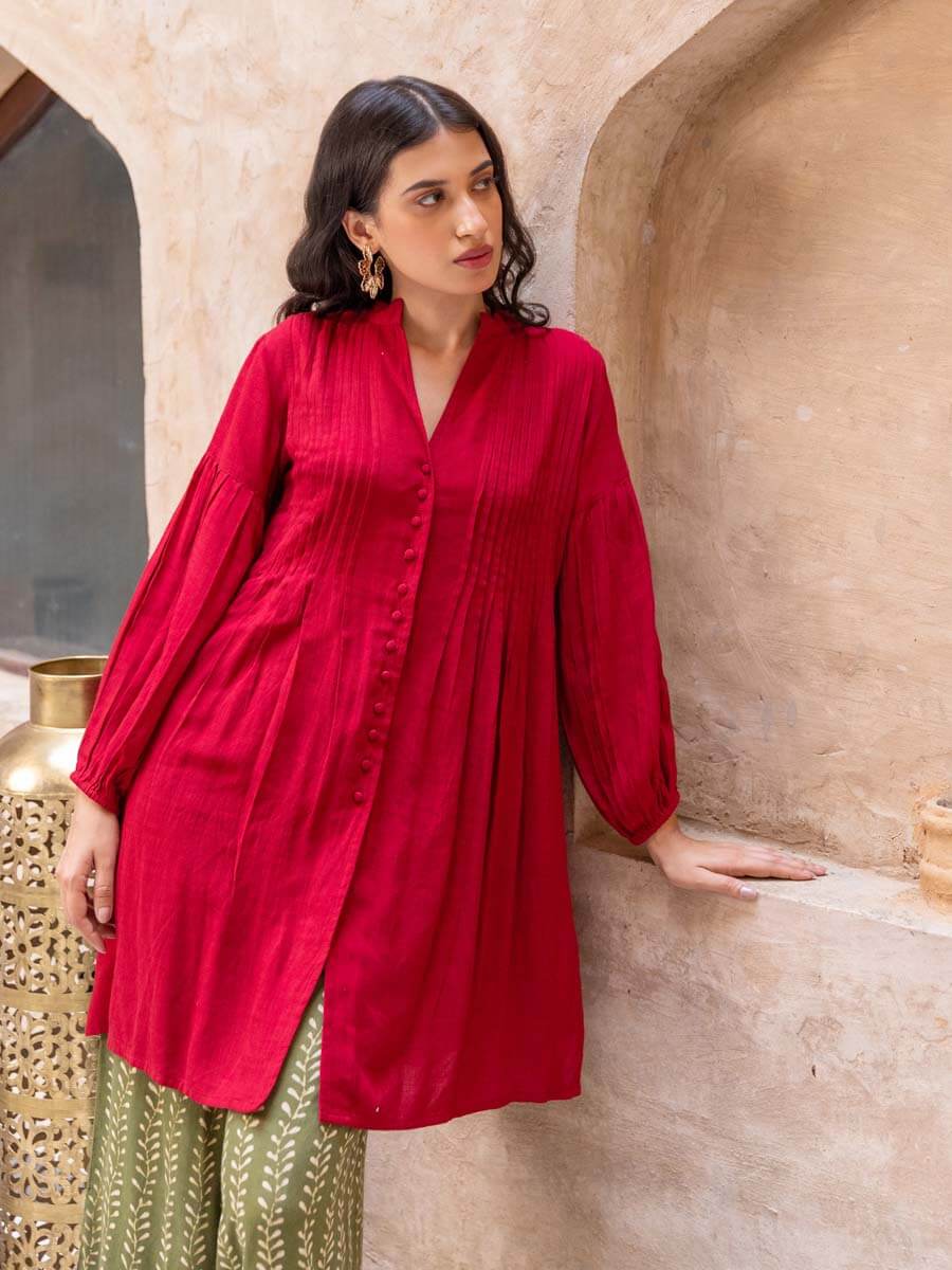 Red Pintuck Kurta
