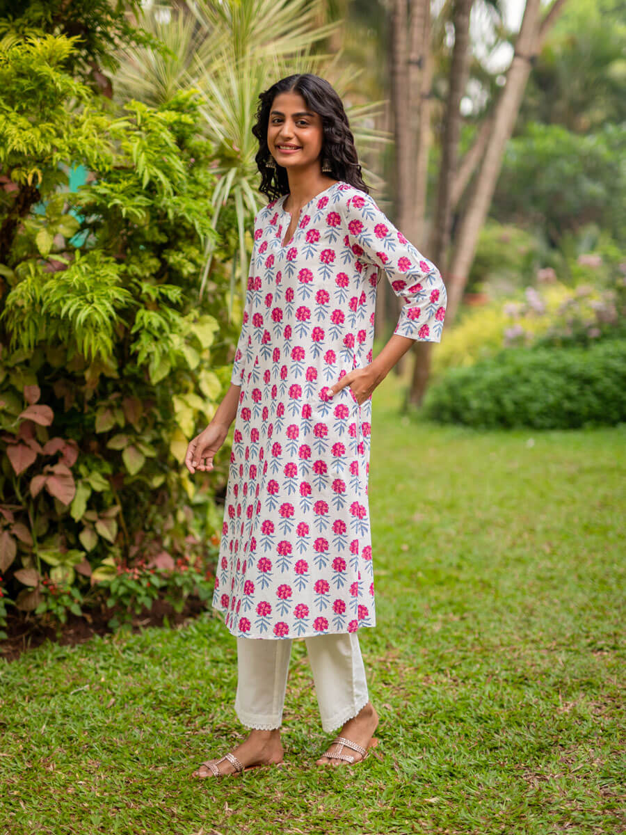 - Elegant, fine cotton, regular kurta with pockets