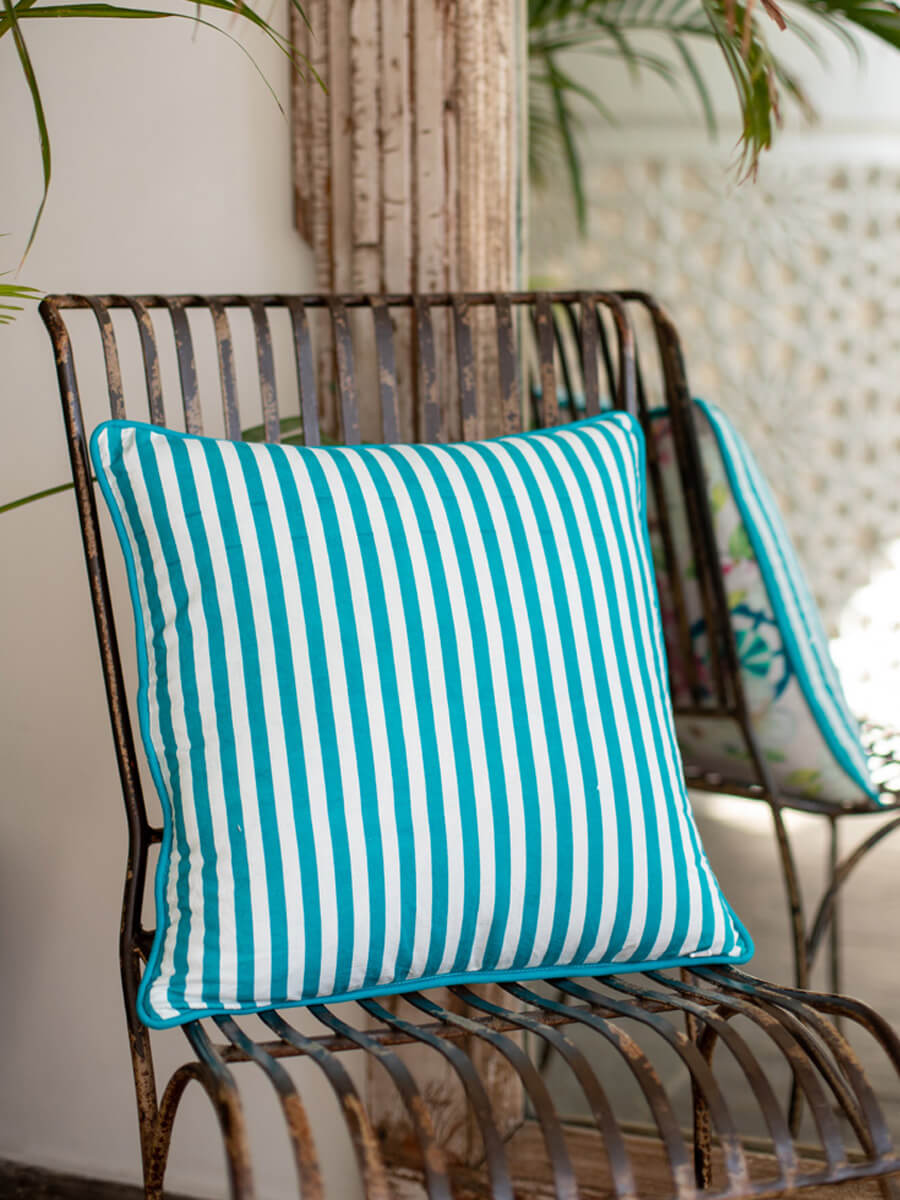 Inspired from the Far East, this collection showcases traditional life and culture using modern colors, accents, and patterns. Crafted in cotton canvas, accented with contrasting rope piping, and secured with a concealed zip. We recommend teaming it up with other cushion covers from this collection.