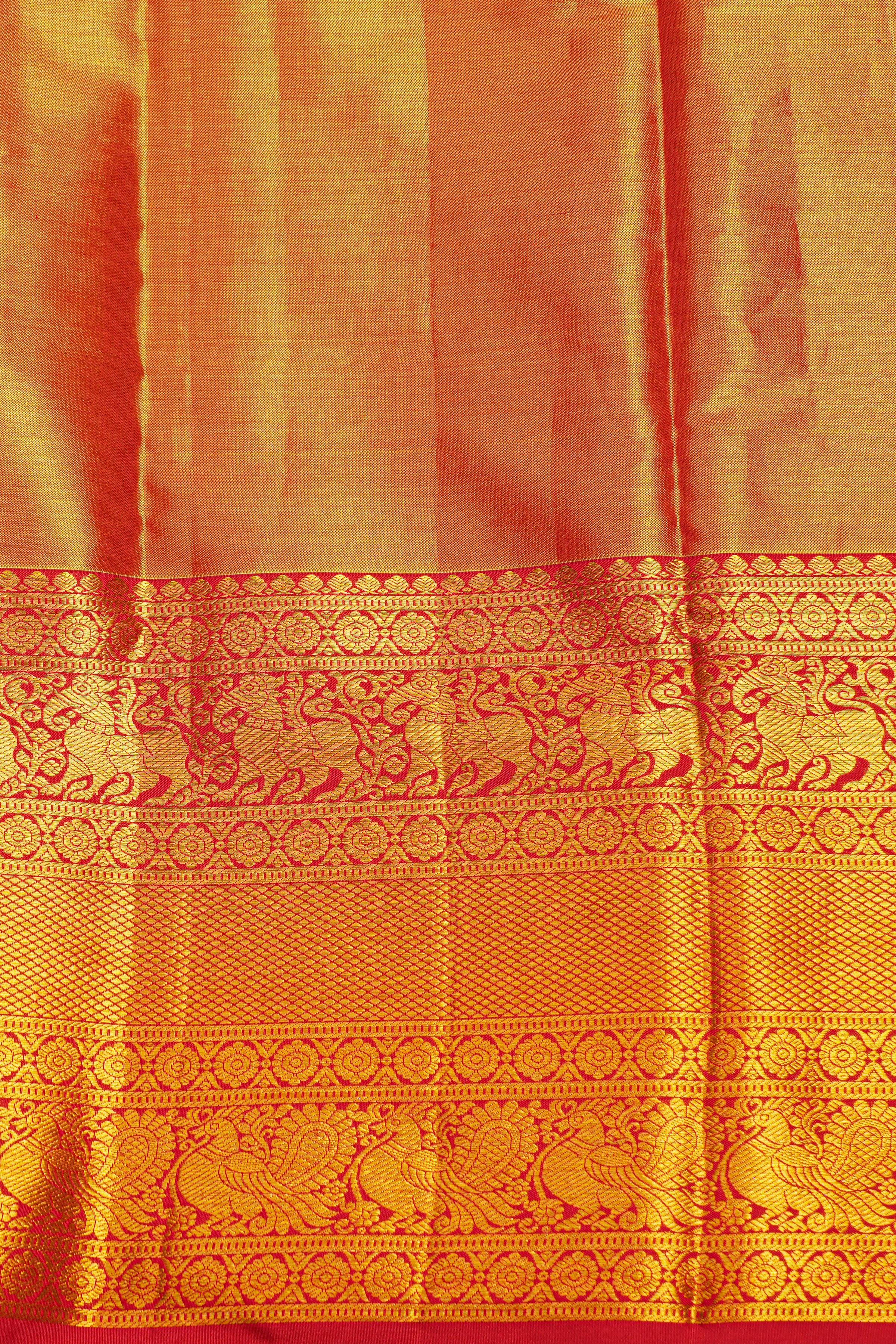 SEA BLUE and RED FLORAL JAAL SILK Saree with KANCHIPURAM