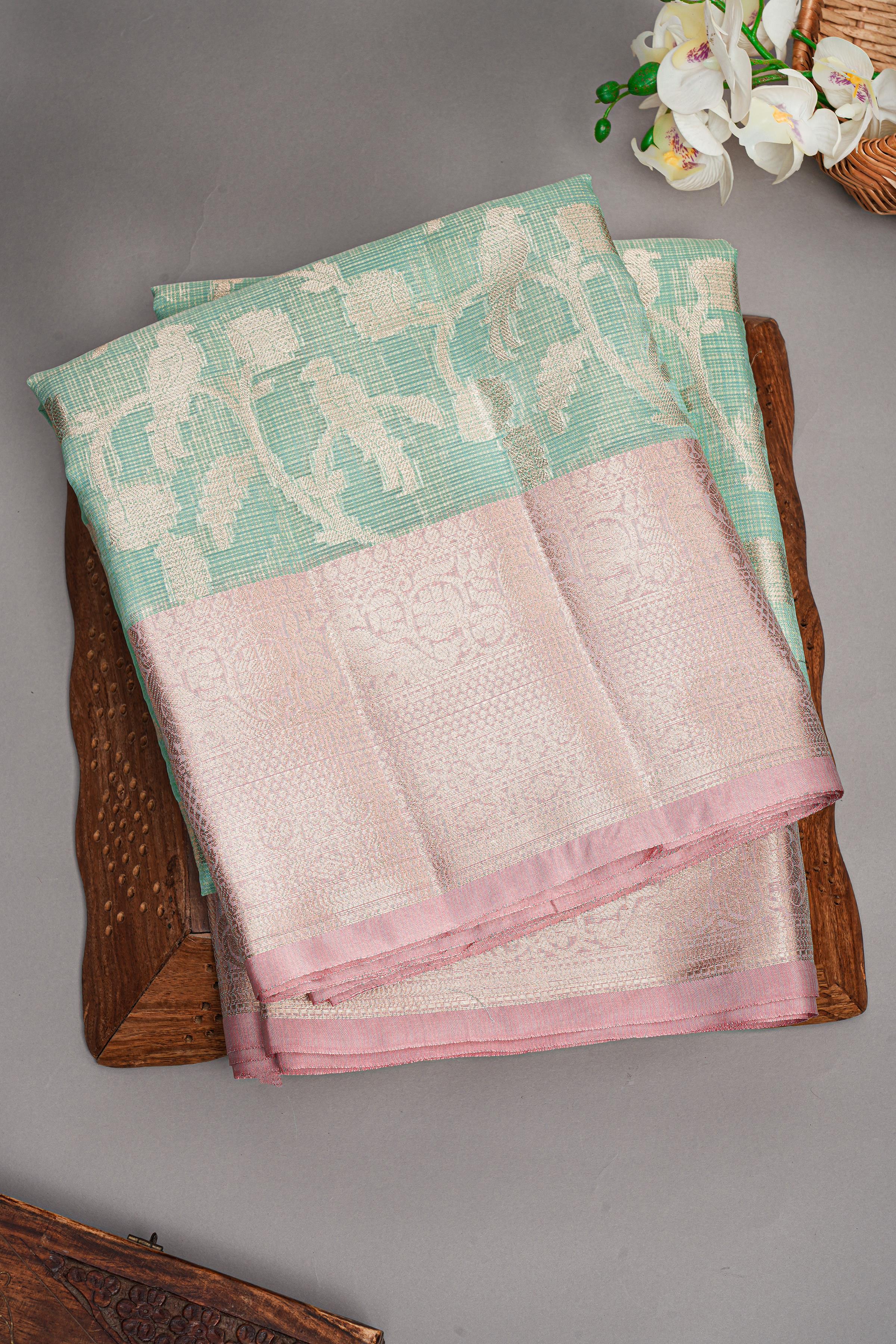 SEA GREEN and DUSTY PINK FLORAL JALL WITH FIGURES KOTA Saree with FANCY