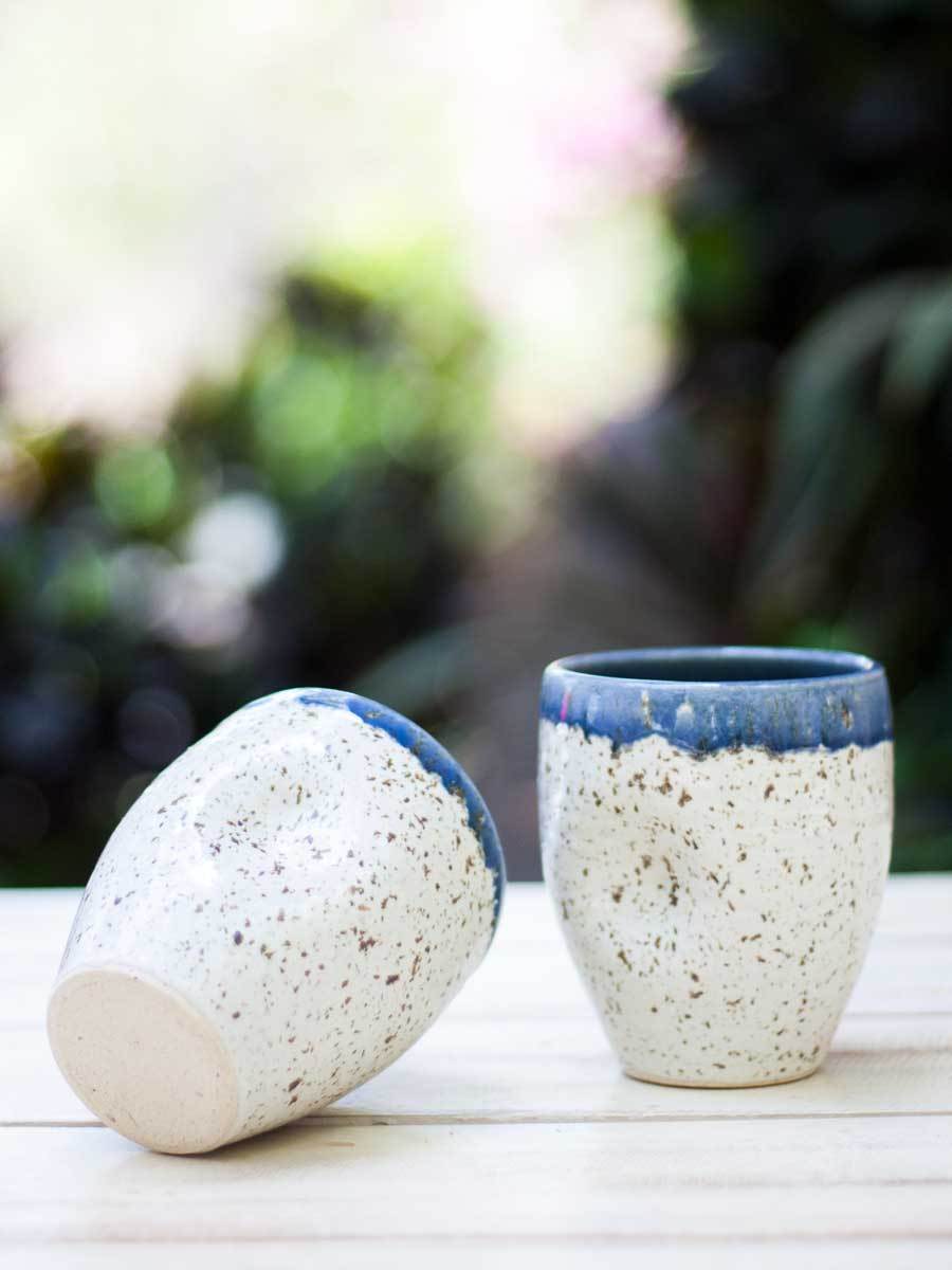 Set of 2 - Dreamy White Dimpled Hand-Thrown Ceramic Tumbler