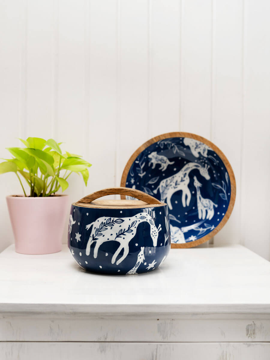 - Dimensions: 15.5 x 15.5 x 12 cm (Jar), 22 x 22 x 6 cm (Bowl)