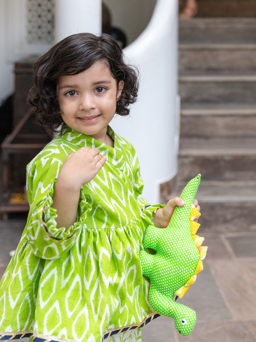 Set of 2 - Rose Block Printed Cotton Angrakha with Dhoti