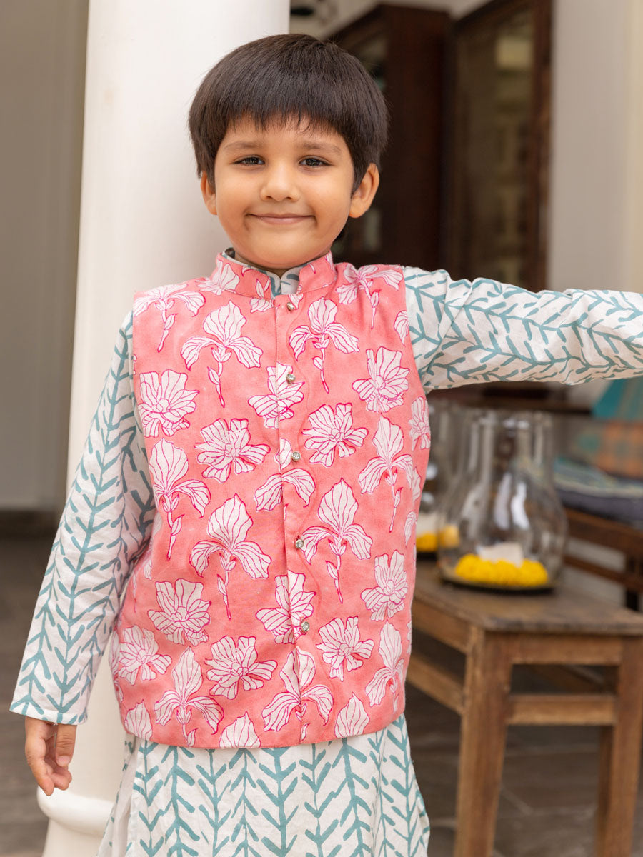 Set of 3 - Anant Organic Cotton Block Printed Long Kurta with Jacket