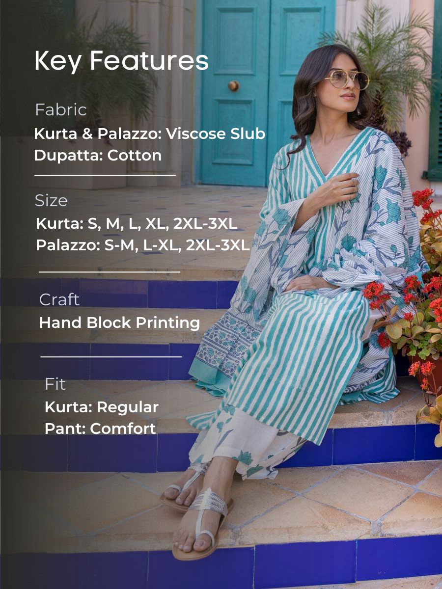 Set of 3 - Geet Kurta, Palazzo and Dupatta