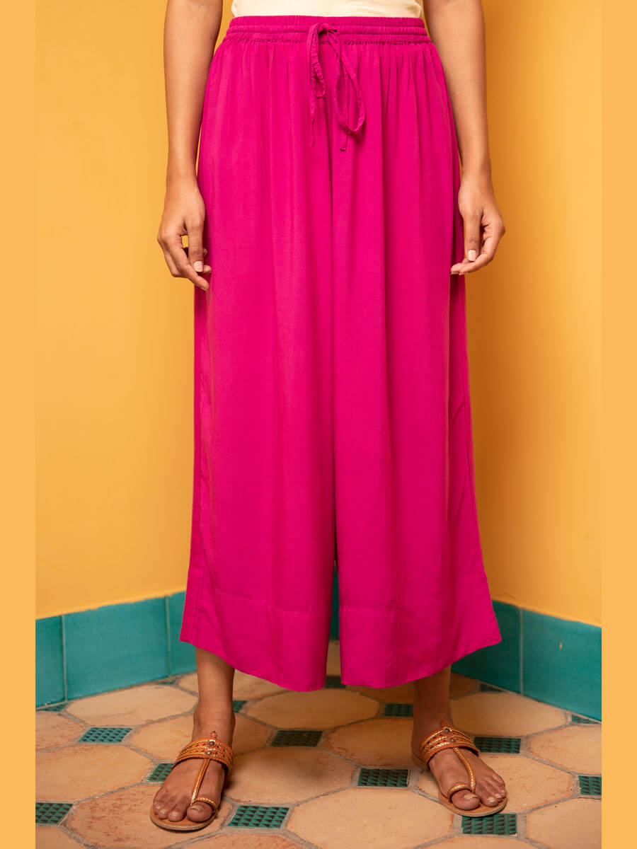 A comfortable palazzo pant handcrafted in modal, perfect for pairing with long shirts, kurtas, and kaftans. Be at your comfortable and stylish best!