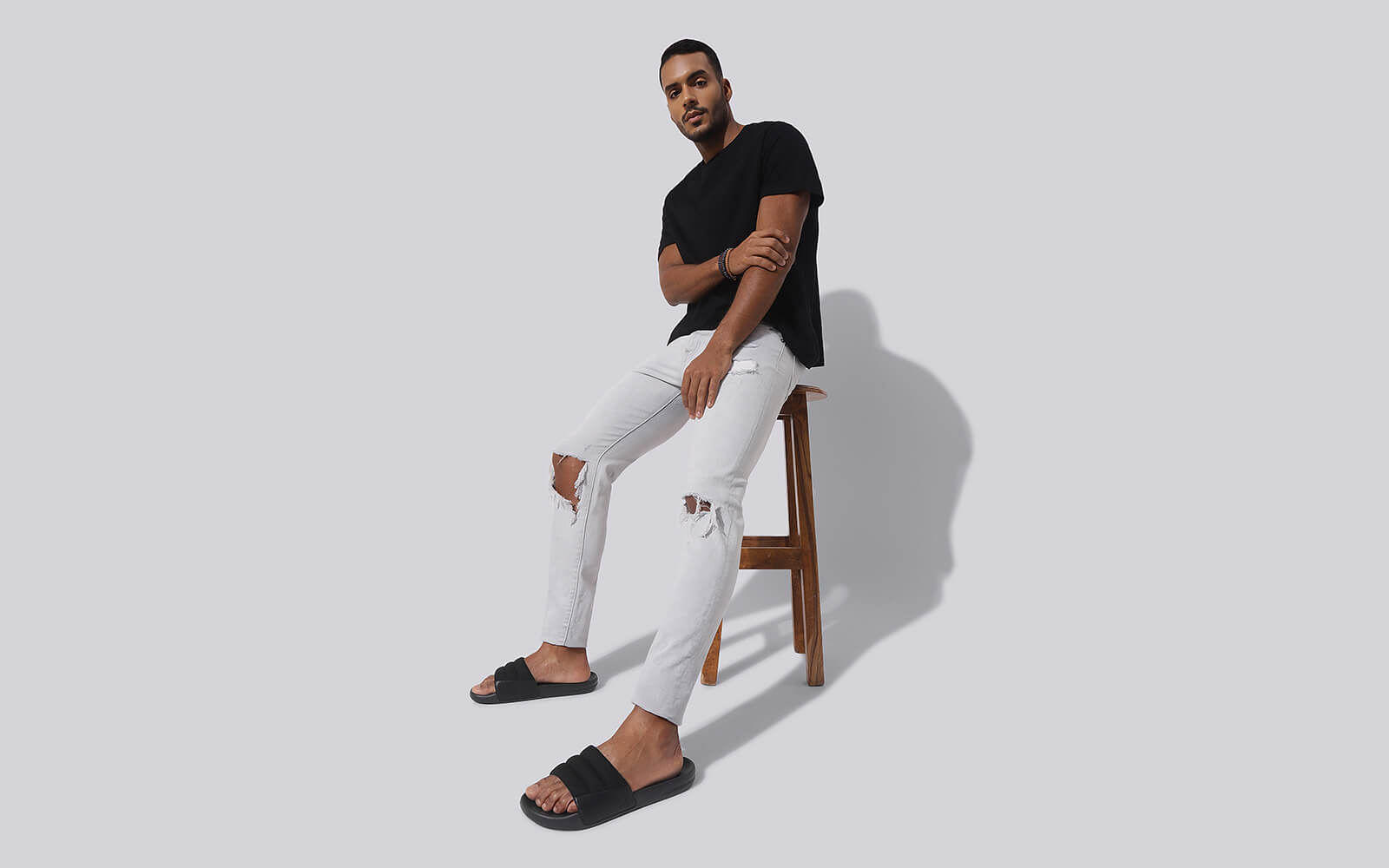 Imagine the feeling of sitting on a ridiculously soft sofa that lets your whole body sink into it and absorbs all your weight. That’s the feeling the Squooshy Slides will bring to your feet. Designed with a sporty aesthetic for a dynamic look and a soft puffed mesh upper padded with memory foam these slides will make you go ‘aaah’ with comfort.