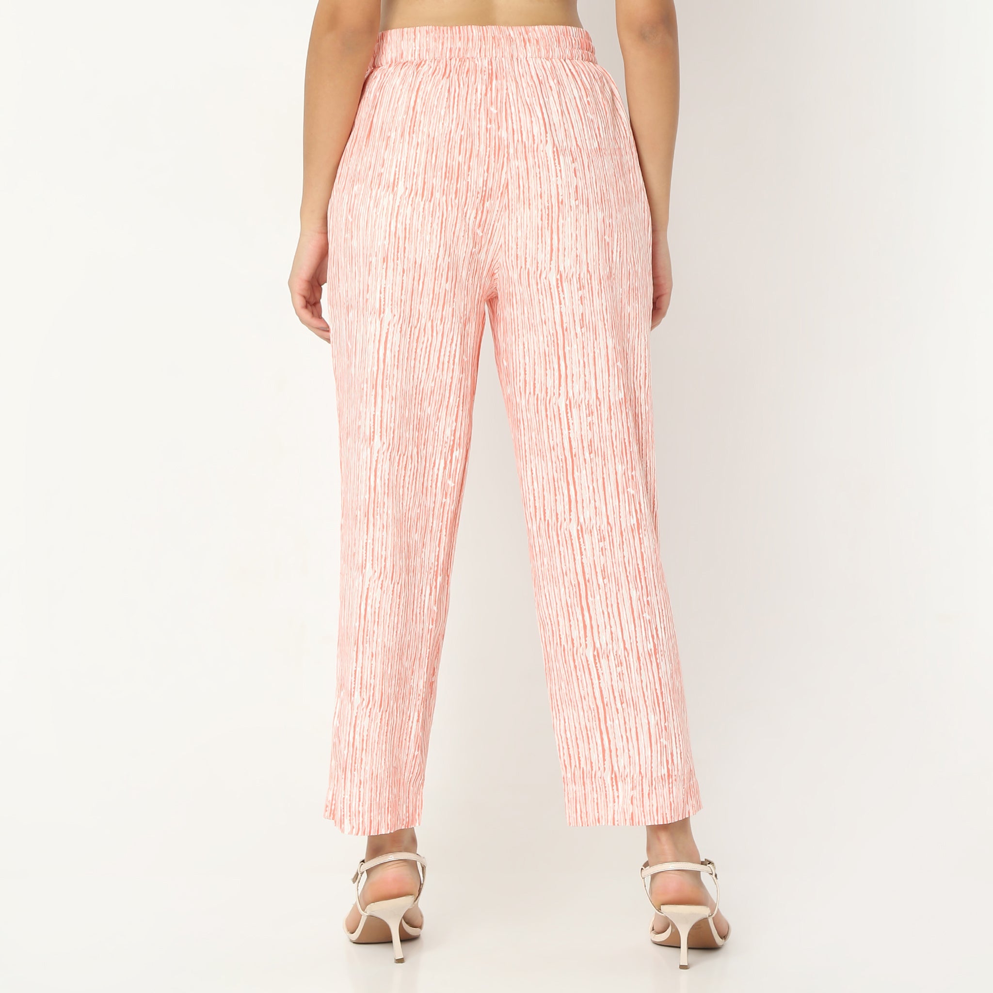 Experience the perfect blend of comfort and style with our Straight Fit Printed Full Length Mid Rise Pants. Crafted from 100% Rayon, these pants offer a soft, breathable feel that keeps you comfortable all day long. The woven fabric ensures durability, while the printed pattern adds a touch of elegance to your wardrobe.