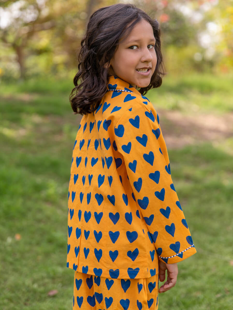 Our soft and comfortable hand block print top & pajama sets will ensure your child gets a good night's sleep. Crafted in 100% GOTS certified organic cotton, these fun prints are a blast across all age groups. Set includes one night shirt and pajama.