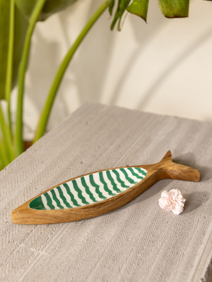 Turquoise Fin Hand Carved Wooden Platter - Small