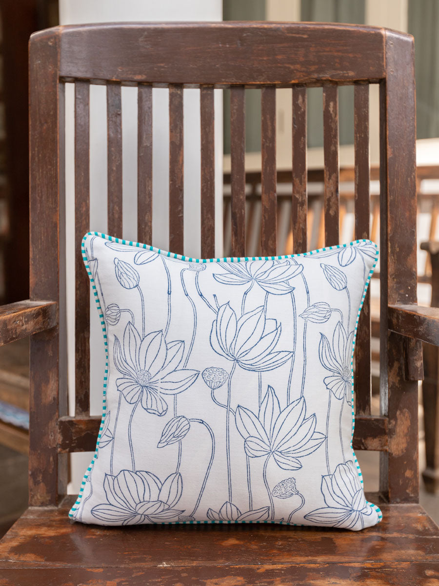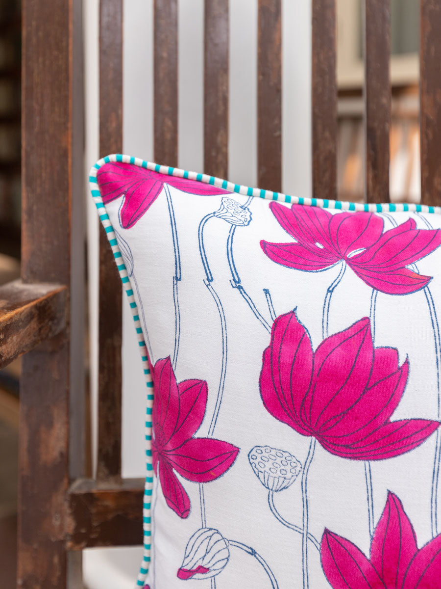 Padma or the Lotus is a central figure in many art forms including Pichhwai. It's a flower with meaning, beauty, and great cultural significance. The origin of the Lotus in Hindu mythology goes as far back as 'Samudra Manthan'. Its first association is with Lakshmi who also emerges from 'Samudra', hence, is referred to as Padmaja or Padmavati. This hand block printed home textiles collection is inspired by the beautiful lotus and other nature inspired elements.