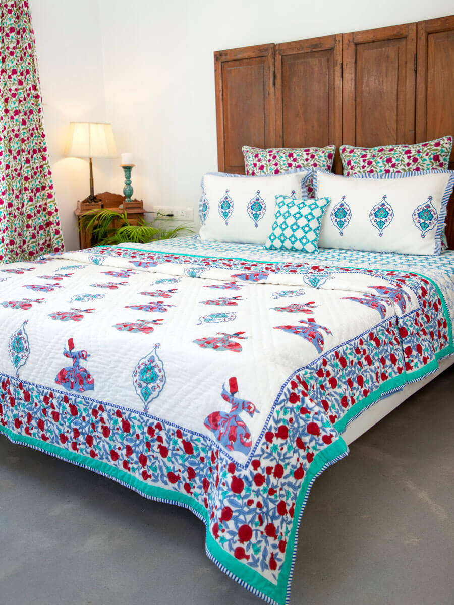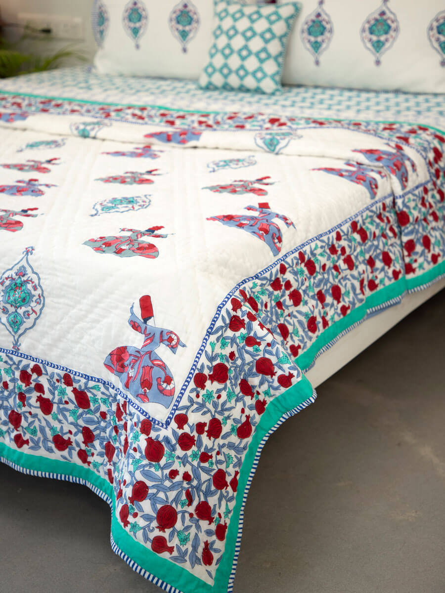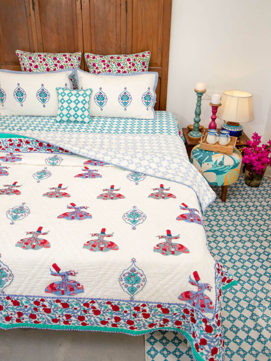 Whirling Dervish Block Printed Cotton Quilt