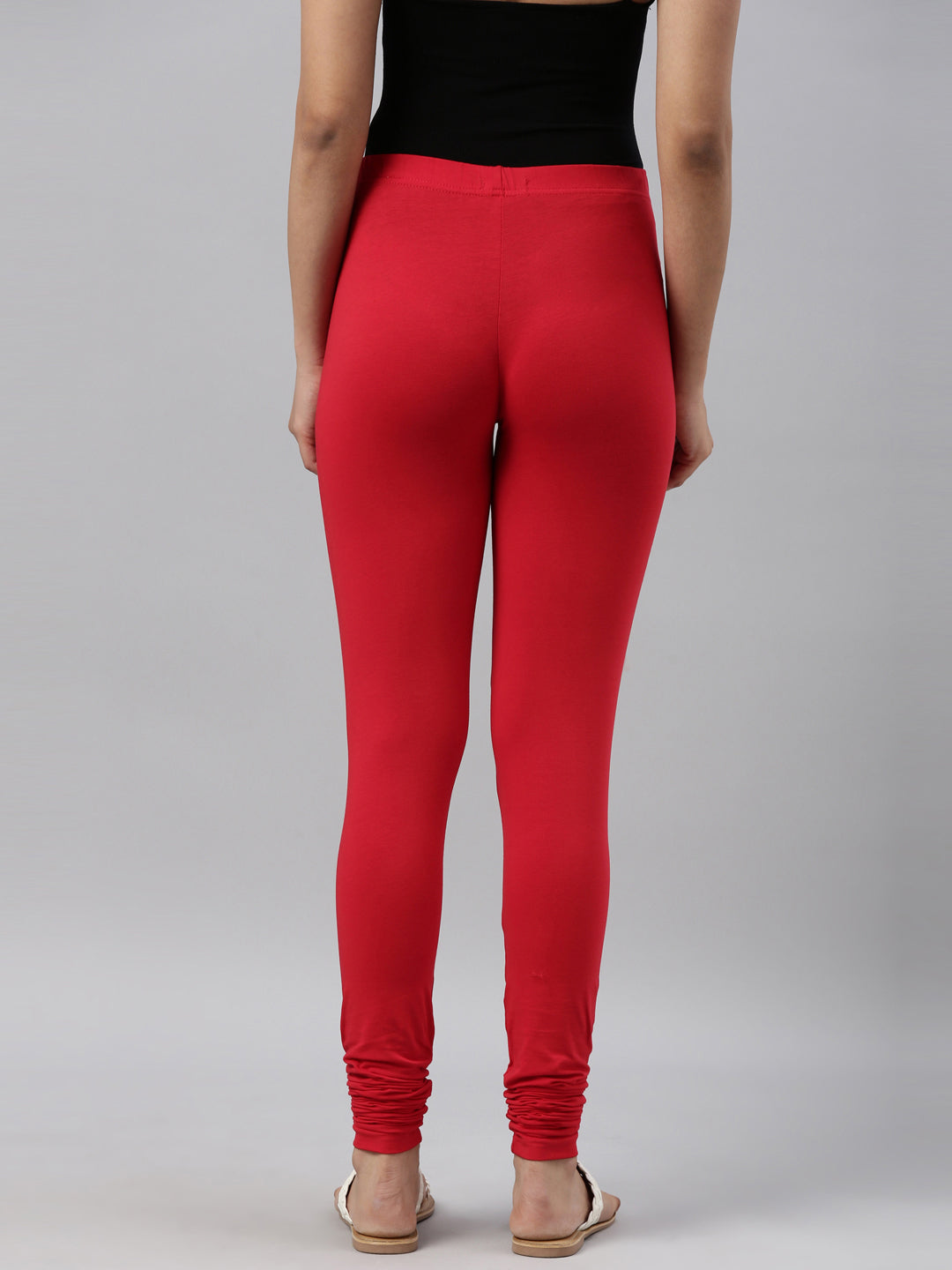 Go chic with a pair of Dark Red Solid Churidar Leggings. Made from high quality cotton, it has a elasticised waistband & gathers at the hemline.
