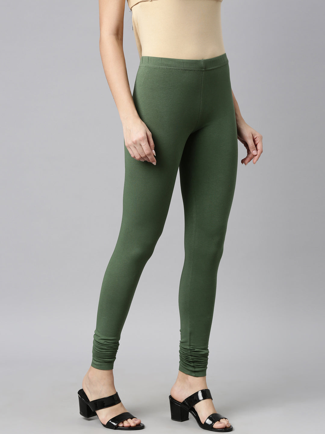 Go chic with a pair of Evergreen Solid Churidar Leggings. Made from high quality cotton, it has a elasticised waistband & gathers at the hemline.