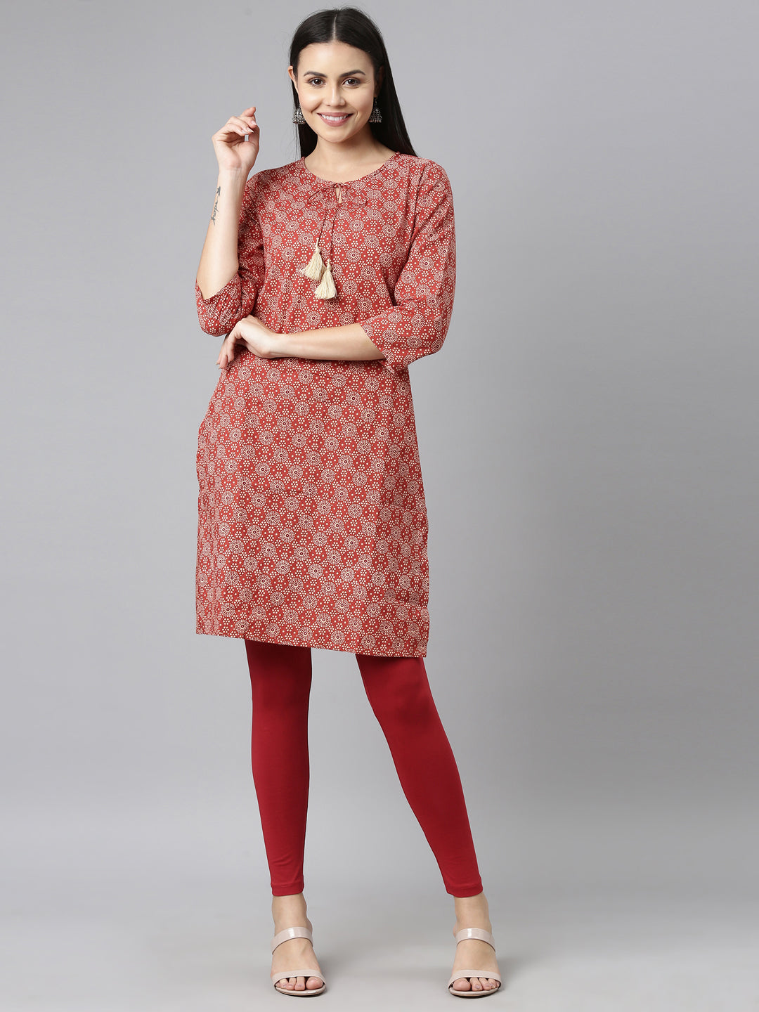 Complete any look, be it traditional or western with these Solid Cherry Leggings. Made from cotton & elastane, it has a elasticised waistband & has a slim fit.