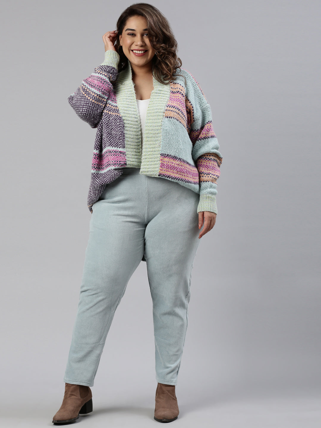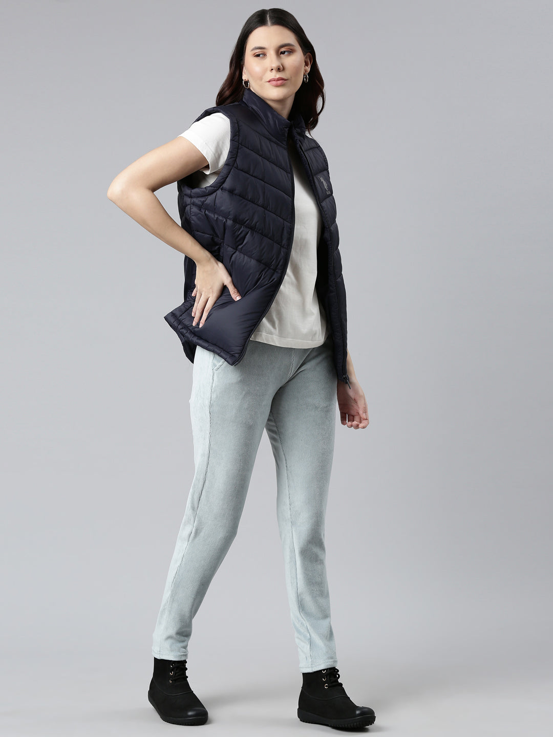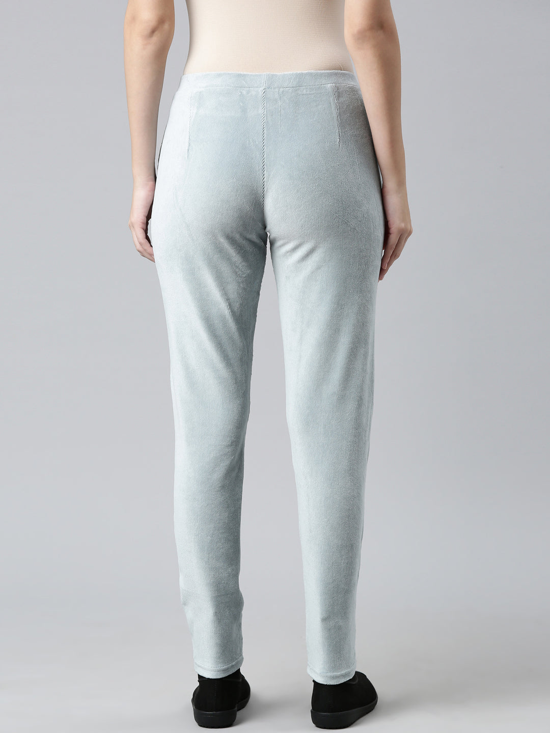 Dusty Blue Cotton Polyester Corduroy Jeggings