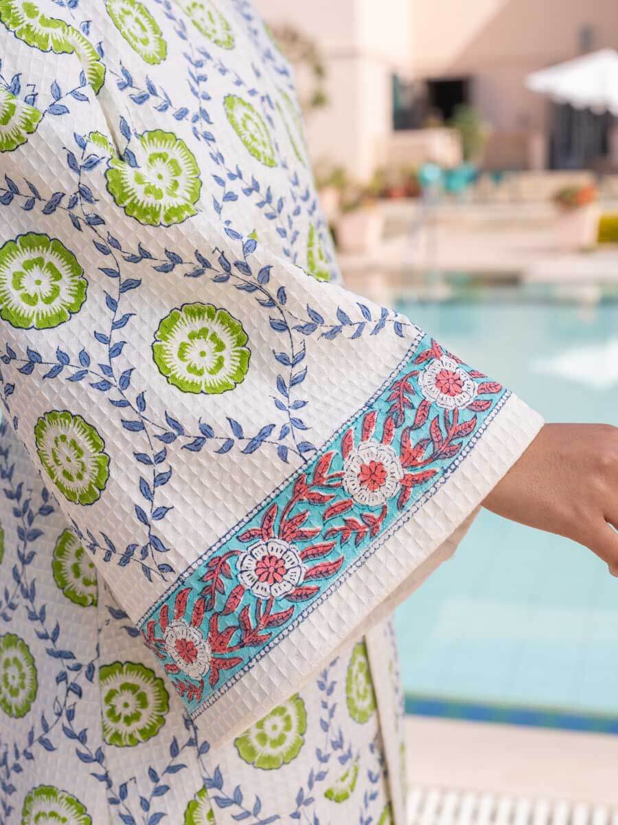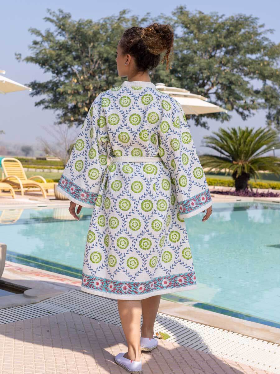 Zeniya Waffle Block Printed Cotton Bath Robe